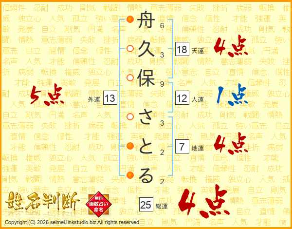 舟久保さとるさんの総運は25画の4点!