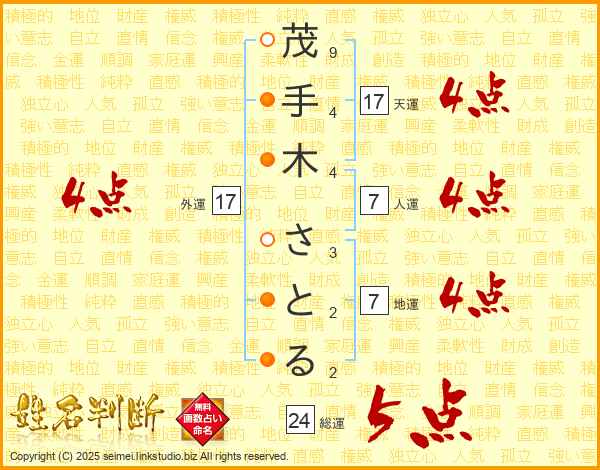 茂(9画)手(4画)木(4画) さ(3画)と(2画)る(2画)