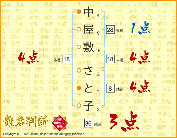 中屋敷さと子さんの外運は18画の4点!