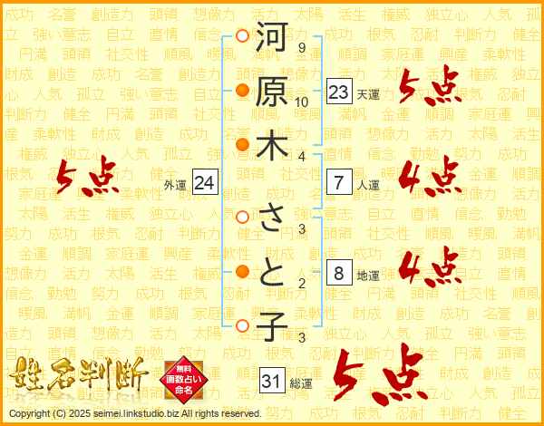 河原木さと子さんの総運は31画の5点!