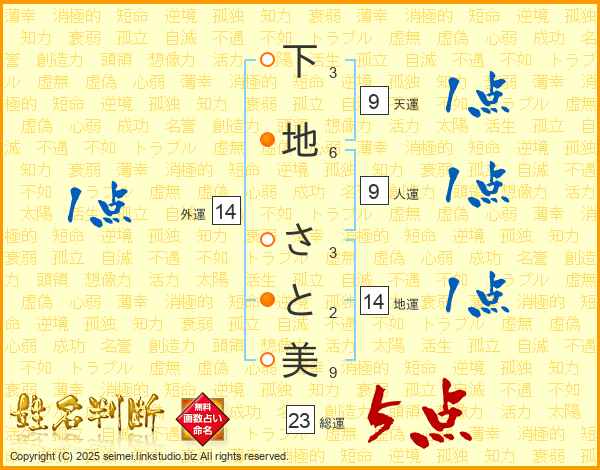 下地さと美さんの総運は23画の5点!