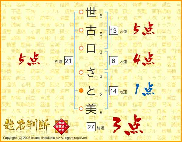 世古口さと美さんの総運は27画の3点!