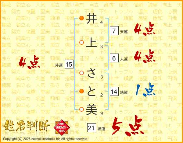 井上さと美さんの天運は7画の4点!