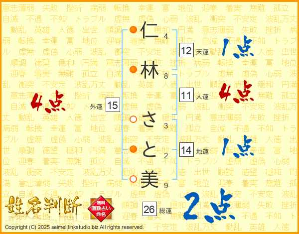 仁(4画)林(8画) さ(3画)と(2画)美(9画)