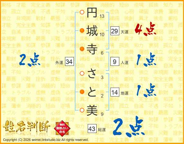 円城寺さと美さんの総運は43画の2点!