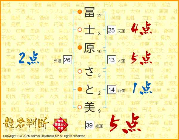 冨(12画)士(3画)原(10画) さ(3画)と(2画)美(9画)