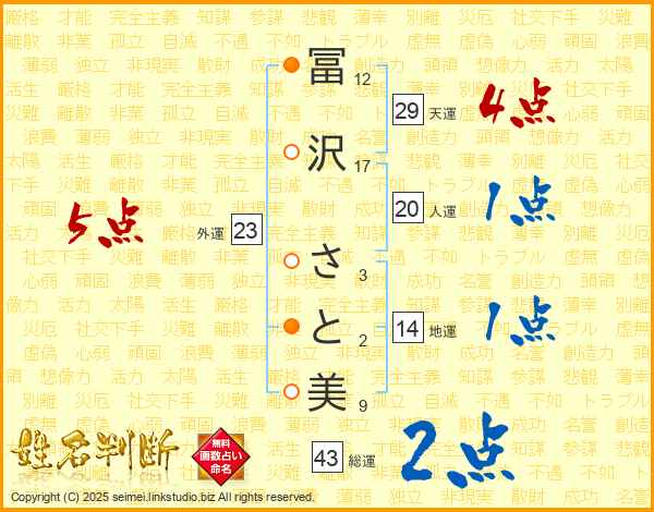 冨沢さと美さんの総運は43画の2点!