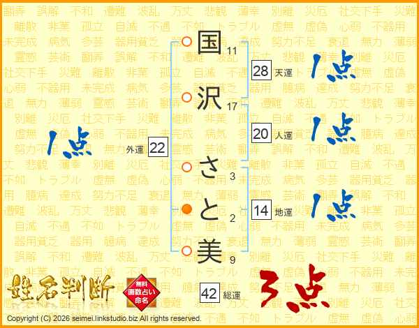 国沢さと美さんの地運は14画の1点!