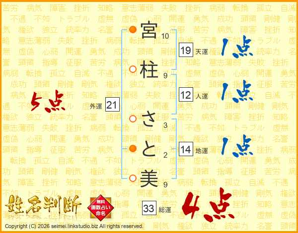 宮(10画)柱(9画) さ(3画)と(2画)美(9画)