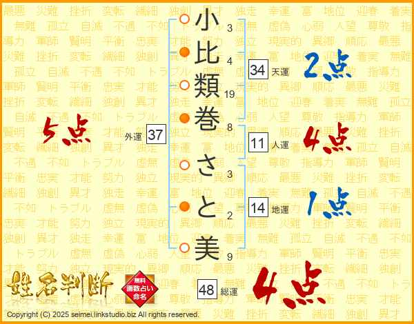 小比類巻さと美さんの総運は48画の4点!