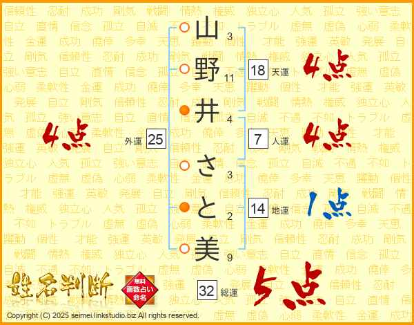 山野井さと美さんの総運は32画の5点!