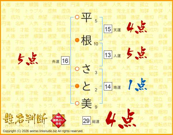 平根さと美さんの総運は29画の4点!