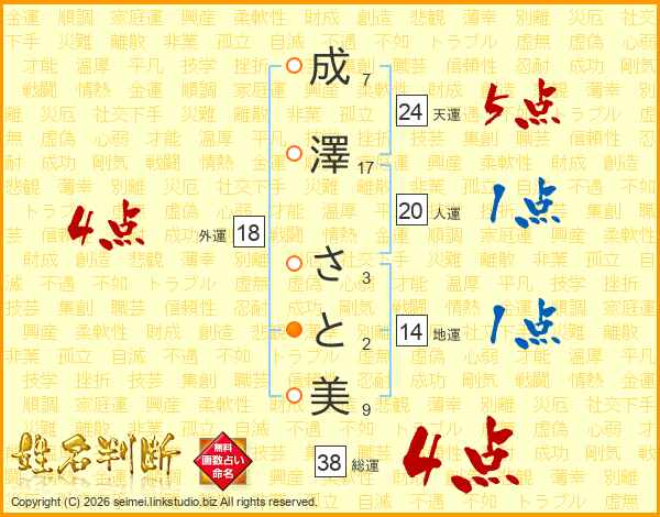 成澤さと美さんの総運は38画の4点!