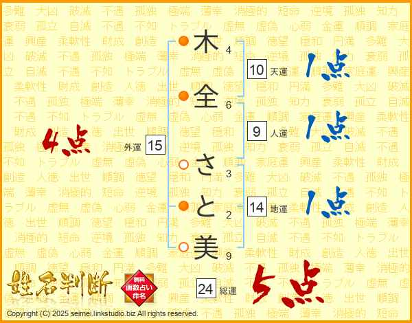 木(4画)全(6画) さ(3画)と(2画)美(9画)