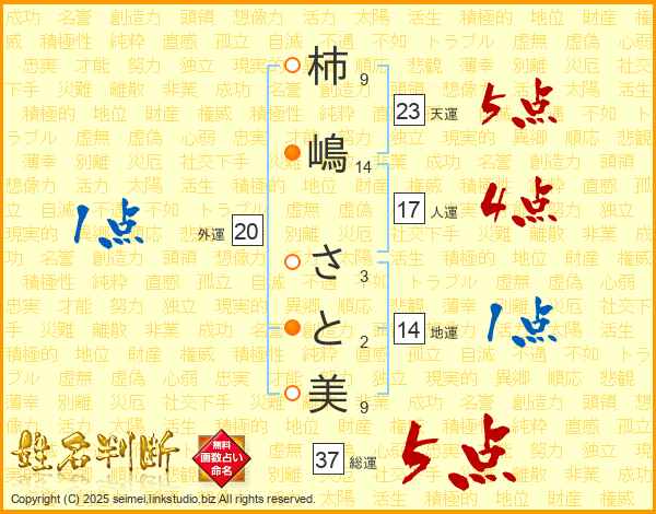 柿嶋さと美さんの総運は37画の5点!