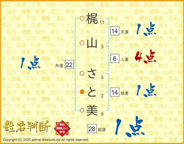 梶山さと美さんの天運は14画の1点!