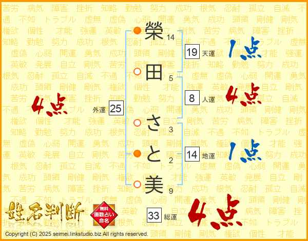 榮田さと美さんの総運は33画の4点!