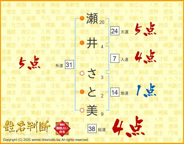 瀬井さと美さんの外運は31画の5点!