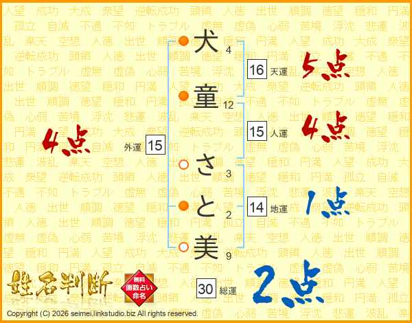 犬童さと美さんの総運は30画の2点!
