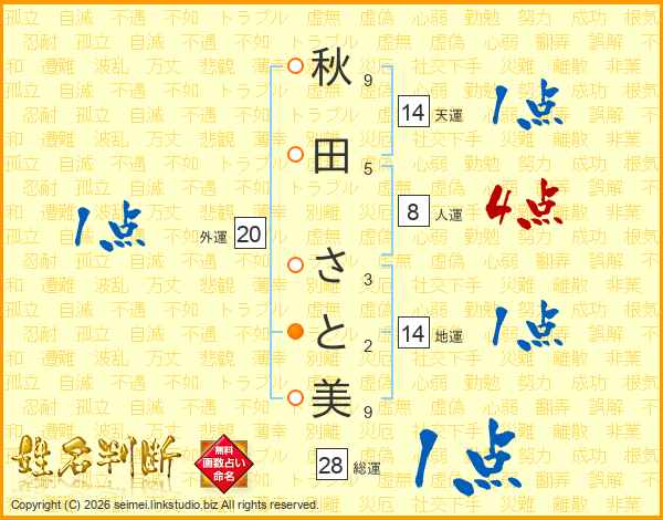秋田さと美さんの天運は14画の1点!