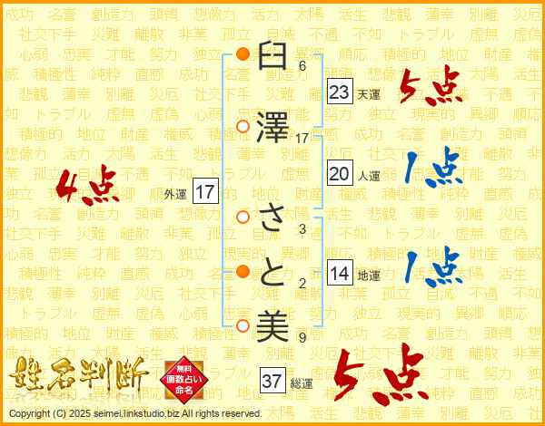 臼(6画)澤(17画) さ(3画)と(2画)美(9画)