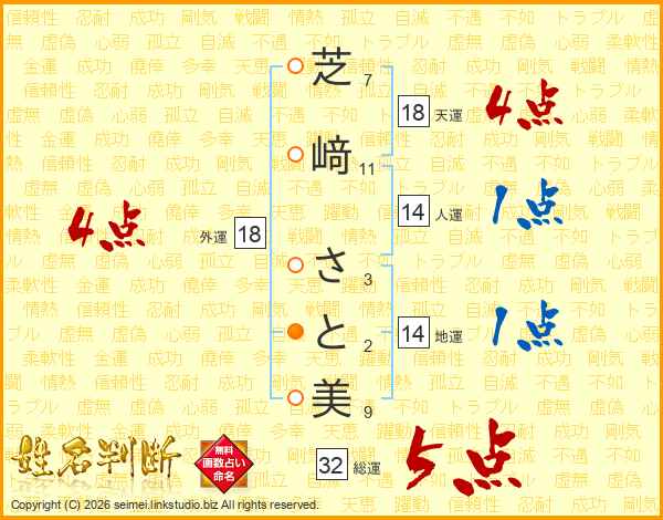 芝(7画)﨑(11画) さ(3画)と(2画)美(9画)