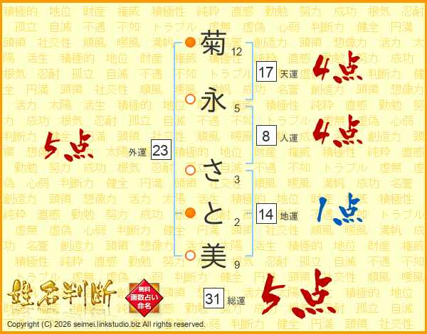菊永さと美さんの総運は31画の5点!