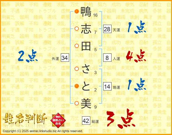 鴨志田さと美さんの地運は14画の1点!