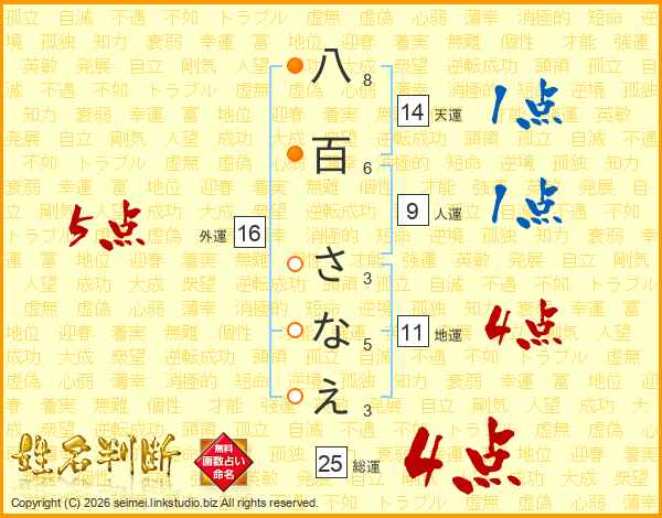 八百さなえさんの総運は25画の4点!