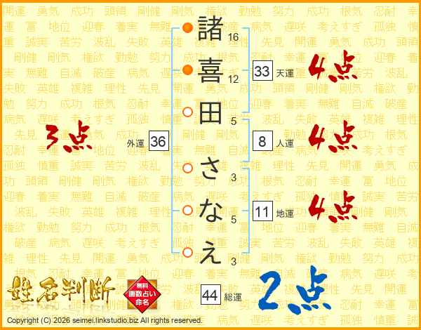 諸喜田さなえさんの総運は44画の2点!