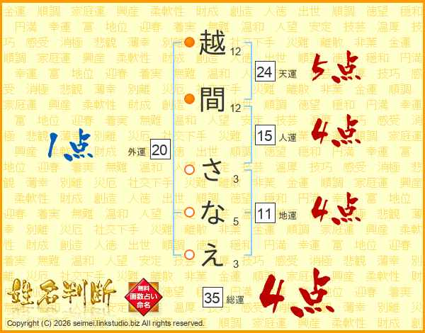 越間さなえさんの総運は35画の4点!