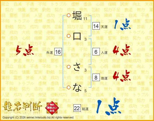 堀口さなさんの天運は14画の1点!