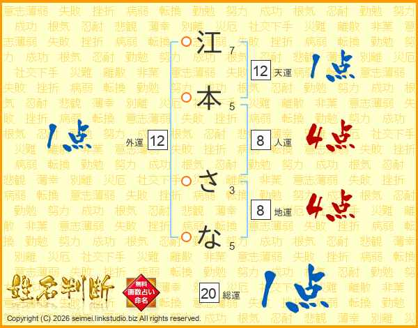 江本さなさんの天運は12画の1点!