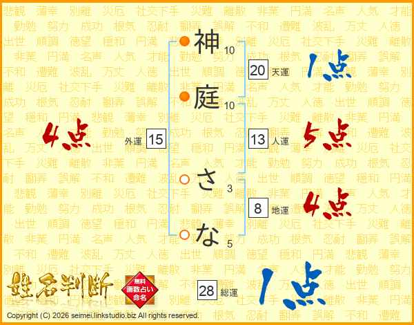 神庭さなさんの総運は28画の1点!