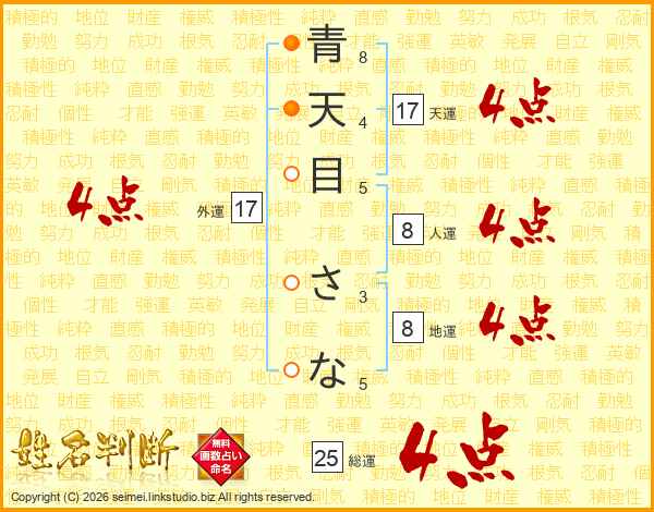 青(8画)天(4画)目(5画) さ(3画)な(5画)