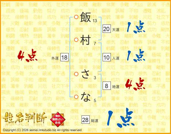 飯村さなさんの外運は18画の4点!