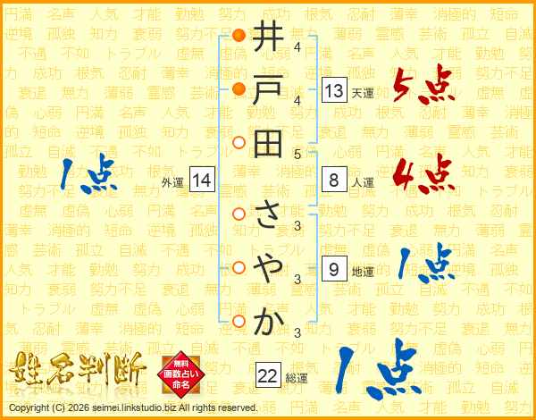井戸田さやかさんの天運は13画の5点!
