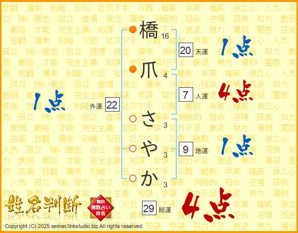 橋(16画)爪(4画) さ(3画)や(3画)か(3画)