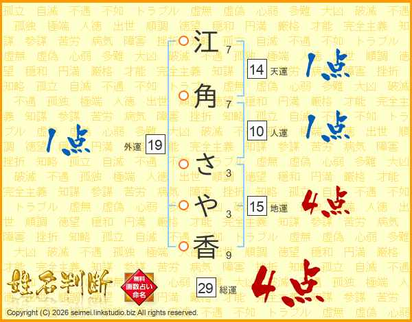 江角さや香さんの総運は29画の4点!
