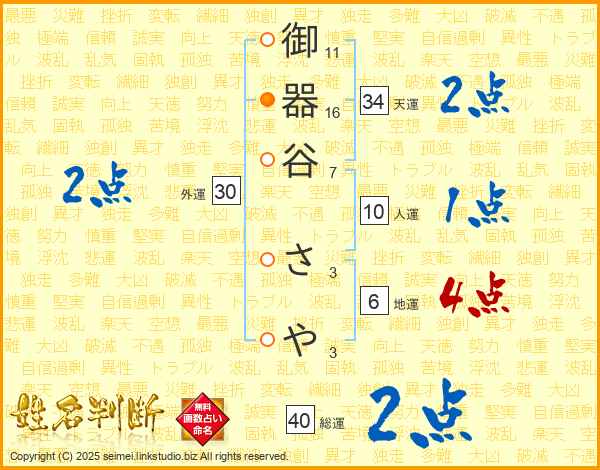 御器谷さやさんの総運は40画の2点!