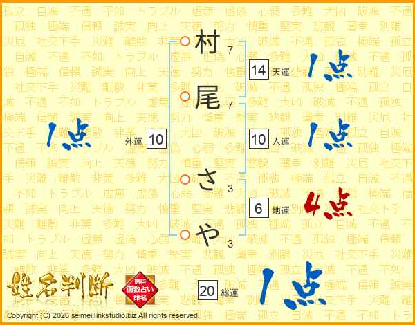 村尾さやさんの総運は20画の1点!