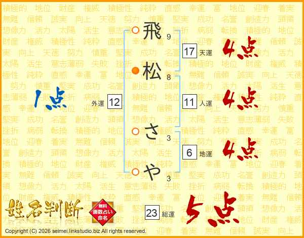 飛松さやさんの天運は17画の4点!