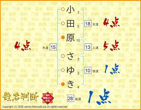 小田原さゆきさんの総運は28画の1点!