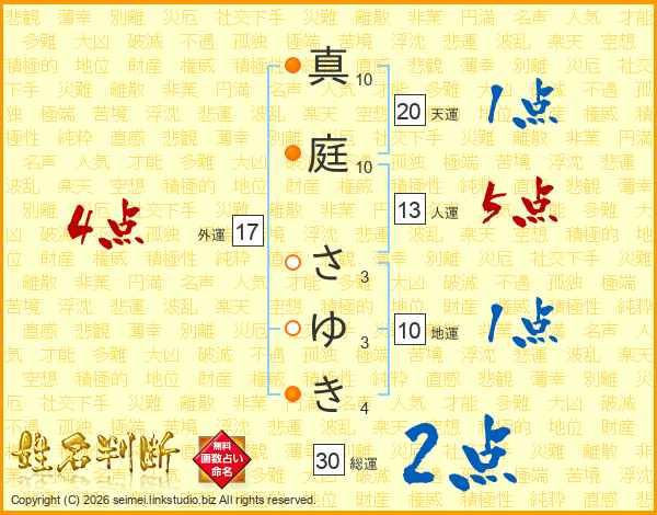 真庭さゆきさんの総運は30画の2点!