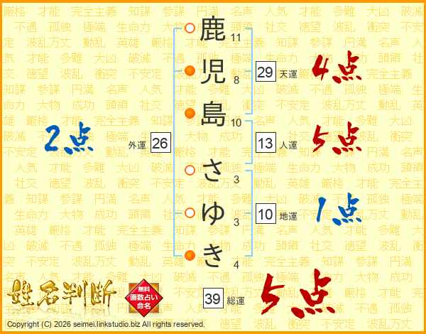鹿児島さゆきさんの総運は39画の5点!