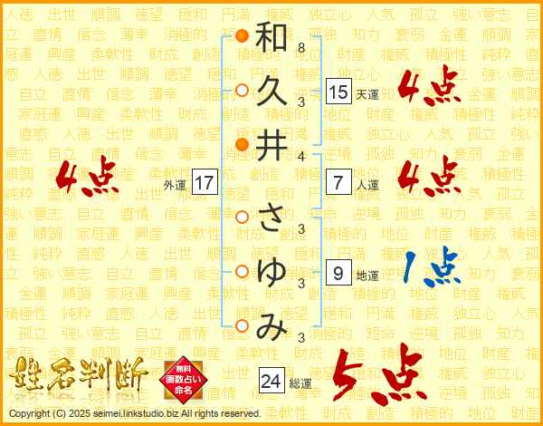 和(8画)久(3画)井(4画) さ(3画)ゆ(3画)み(3画)