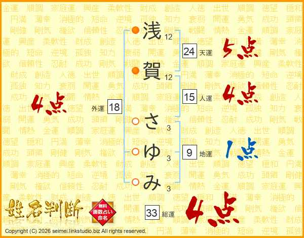 浅賀さゆみさんの総運は33画の4点!