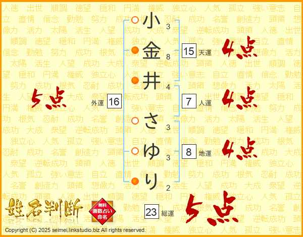 小(3画)金(8画)井(4画) さ(3画)ゆ(3画)り(2画)
