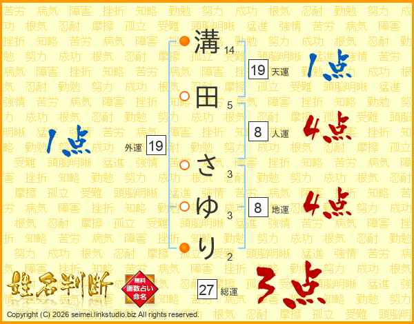 溝田さゆりさんの総運は27画の3点!