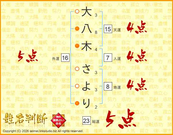 大八木さよりさんの外運は16画の5点!